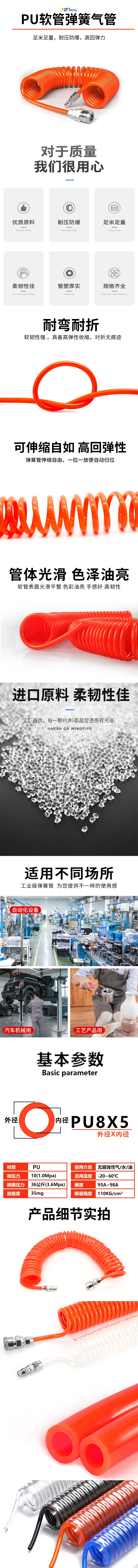 商品名称: 星浙气动 PU系列 带接头弹簧气管 PU6X4 6mm 4mm 9m 透明色